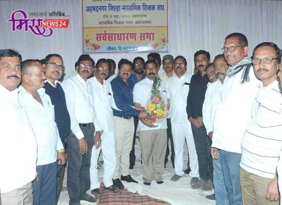 नगर-कल्याण रोड येथील जाधव लॉन येथे हरिश्चंद्र नलगे यांच्या अध्यक्षतेखाली वार्षिक सर्वसाधारण सभा पार पडली. यावेळी चांगदेव कडू, मच्छिंद्र लगड, शिवाजी हरिश्चंद्रे, रामनाथ सुरुसे, बाजीराव कोरडे, राजेंद्र कोतकर, महेंद्र हिंगे, नंदकुमार शितोळे, उध्दव गायकवाड, विठ्ठल पानसरे, बबनराव लांडगे, बाळासाहेब भोर, अर्जुन भुजबळ, मंगेश काळे, छबुराव फुंदे आदींसह जिल्ह्यातील माध्यमिक शिक्षक मोठ्या संख्येने उपस्थित होते.