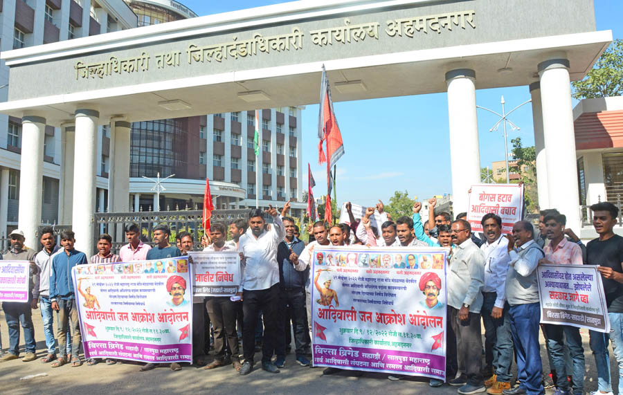 आदिवासींचे अवैध जातप्रमाणपत्र घेऊन अधिसंख्य पदावर दिलेल्या नियुक्त्या रद्द करुन त्यांच्यावर फौजदारी गुन्हे दाखल होऊन देण्यात आलेले लाभ वसूल करण्याची मागणी आदिवासी समाज व संघटनांनी आंदोलनाच्या माध्यमातून केली. शुक्रवारी (दि.9 डिसेंबर) जिल्हाधिकारी कार्यालयावर मोर्चाने येऊन आदिवासी बांधवांनी जोरदार निदर्शने केली. 29 नोव्हेंबर रोजी महाराष्ट्र राज्य मंत्रिमंडळाच्या बैठकीत बोगस आदिवासी असलेल्या बहुसंख्य पदांना कायमस्वरूपी संरक्षण दिल्याच्या निर्णयाविरोधात राज्य सरकारचा यावेळी निषेध नोंदविण्यात आला.