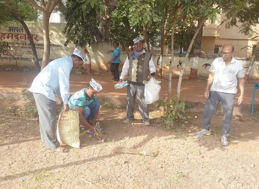 सकाळी जॉगिंग पार्कच्या मैदानावर जमलेल्या आम आदमी पार्टीच्या पदाधिकारी व कार्यकर्त्यांनी हातात झाडू घेऊन मैदान परिसराची स्वच्छता करण्यास सुरुवात केली. काही तासातच हा परिसर स्वच्छ करुन मोठ्या प्रमाणात प्लास्टिक व इतर कचर्याचे संकलन करुन परिसर स्वच्छ करण्यात आला.