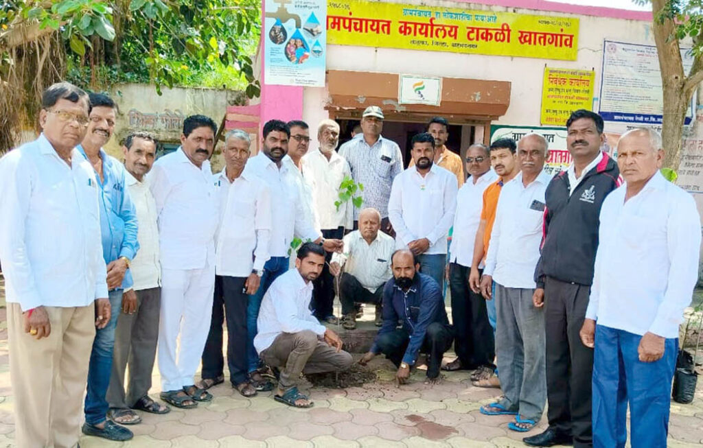 शहीद स्मारक, ग्रामपंचायत व स्मशान भूमी परिसरात लावली झाडे