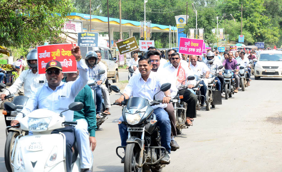 जुनी पेन्शन लागू होण्यासाठी राज्य सरकारी कर्मचारी बेमुदत संपाच्या तयारीत आहे. या आंदोलनाचा पहिला टप्पा म्हणून प्रत्येक जिल्ह्यात पेन्शन संदेश बाईक रॅली काढण्यात आली आहे. या रॅलीची सुरुवात सिंचनभवन येथून झाली. त्यानंतर जीएसटी कार्यालय, आयटीआय, सावेडी तहसिल कार्यालय येथून थेट जिल्हाधिकारी कार्यालयावर बाईक रॅली धडकली. जिल्हाधिकारी कार्यालयात विविध मागण्यांचे निवेदन निवासी उपजिल्हाधिकारी पल्लवी निर्मळ यांना देण्यात आले. तर यावेळी झालेल्या रॅलीच्या सांगता सभेत प्रमुख पदाधिकार्यांनी राज्य व केंद्र सरकारच्या कामगार विरोधी धोरणाचा निषेध नोंदवून, हक्काची जुनी पेन्शन मिळण्याची मागणी केली.
