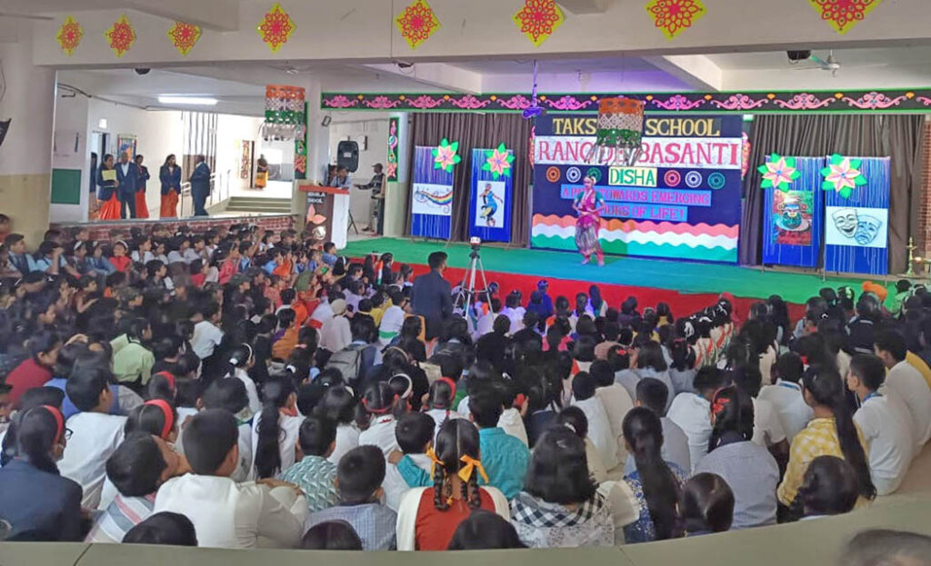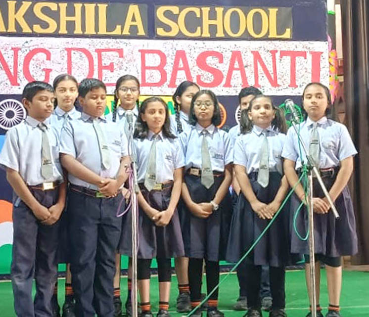 अहमदनगर (प्रतिनिधी)- येथील तक्षिला स्कूलमध्ये आयोजित करण्यात आलेल्या रंग दे बसंती उपक्रमातंर्गत आंतरशालेय विविध स्पर्धा उत्साहात पार पडल्या. यावेळी झालेल्या सांस्कृतिक कार्यक्रमात विद्यार्थ्यांनी आपल्या कलागुणांचे बहारदार सादरीकरण करुन विविध स्पर्धेत आपल्या कौशल्याची चुणूक दाखवली. या स्पर्धेत शहरातील 16 शाळांचे सुमारे 450 विद्यार्थी सहभागी झाले होते.