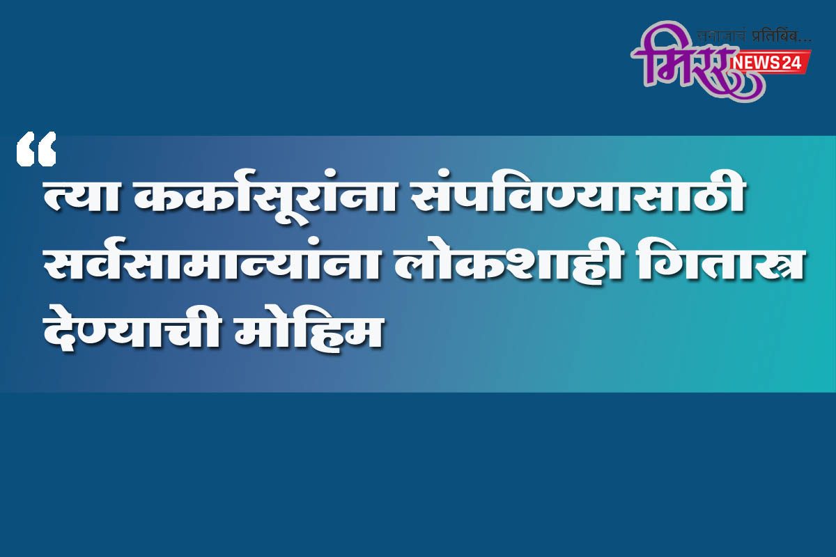 अहमदनगर (प्रतिनिधी)- समाजातील लोक कर्कासूर आणि न्याय कर्कासूरांना कायमचे संपविण्यासाठी पीपल्स हेल्पलाईन व भारतीय जनसंसदेने सर्वसामान्य नागरिकांना लोकशाही गितास्त्र देण्याचा निर्णय घेतला आहे. भारतीय संविधानाबरोबरच गीतेतील तत्वज्ञान उन्नत चेतनेच्या आधारे प्रत्यक्ष रितीने राबविण्यासाठी हा प्रयत्न असल्याची माहिती अॅड. कारभारी गवळी यांनी दिली.
