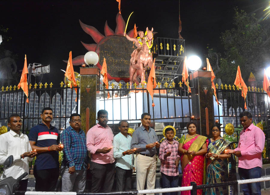 जुने बस स्थानक येथील छत्रपती शिवाजी महाराजांच्या पुतळ्यासमोर शिवप्रेमींनी एकत्र येऊन महाराजांना दीपोत्सवाची मानवंदना दिली. यावेळी मराठा समन्वय परिषदेच्या राज्य कार्याध्यक्षा अनिता काळे, मराठा सेवा संघाचे जिल्हाध्यक्ष सुरेश इथापे, प्रविण सोनवणे, वसंत कर्डिले, गणेश वाबळे, आशा गायकवाड, भाग्येश सव्वासे, पूजा कोटा, संतोष हराळ, अमोल लहारे, आशिष सुपेकर, बापू साठे, महेश काळे आदी उपस्थित होते.