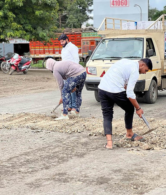 नगर-कल्याण खड्डेमय रस्त्याची स्वखर्चाने दुरुस्ती