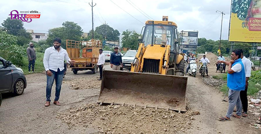 नगर-कल्याण खड्डेमय रस्त्याची स्वखर्चाने दुरुस्ती