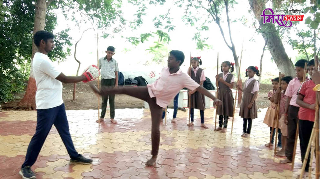 अंगावर आलेल्या व्यक्तीचा हल्ला अचूक पद्धतीने रोखण्याचे आणि कराटे, तायक्वांदो व लाठी काठीच्या माध्यमातून स्वतःचा बचाव करून हल्लेखोरांना सडेतोड उत्तर देण्याचे प्रात्यक्षिक शिकवले जात आहे. प्रशिक्षक सुरेश जाधव यांच्या मार्गदर्शनाखाली विद्यार्थी विविध मर्दानी खेळाचे धडे गिरवत आहे.
