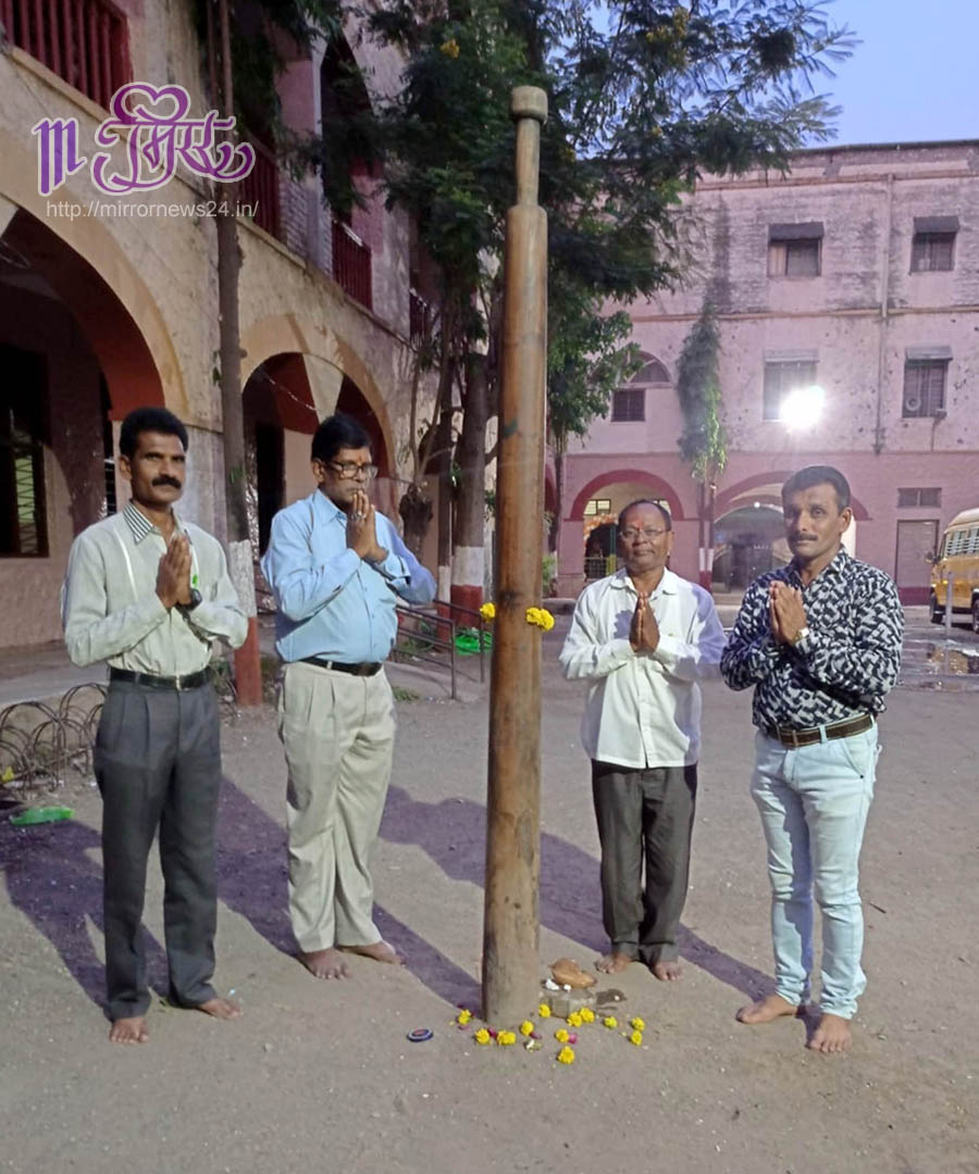 अहमदनगर (प्रतिनिधी)- दिवाळी पाडव्यानिमित्त शहरातील दादा चौधरी विद्यालयात रोप व पोल मल्लखांबची विधीवत पूजा करण्यात आली. जिल्हा तालिम संघाचे खजिनदार पै.नाना डोंगरे यांच्या हस्ते ही पूजा पार पडली. यावेळी मल्लखांब प्रशिक्षक गणेश वाळुंजकर, मल्लखांब संघटनेचे जिल्हाध्यक्ष राजकुमार धोत्रे, हरियाली संस्थेचे अध्यक्ष सुरेश खामकर, सार्थ वाळुंजकर आदी उपस्थित होते.