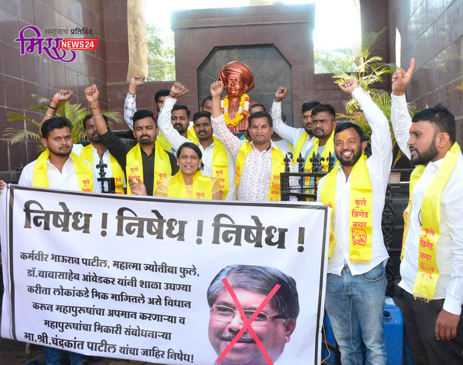 अहमदनगर (प्रतिनिधी)- फुले ब्रिगेडच्या वतीने भाजपचे नेते आणि उच्च व तंत्र शिक्षण मंत्री चंद्रकांत पाटील यांनी कर्मवीर भाऊराव पाटील, महात्मा फुले, डॉ. बाबासाहेब आंबेडकर यांच्याबद्दल केलेल्या वादग्रस्त वक्तव्याचा निषेध नोंदविण्यात आला. माळीवाडा येथील महात्मा फुले यांच्या पुतळ्यासमोर चंद्रकांत पाटील यांच्या वक्तव्याच्या निषेधार्थ जोरदार निदर्शने करुन चंपावाणी निषेधच्या घोषणा देण्यात आल्या.