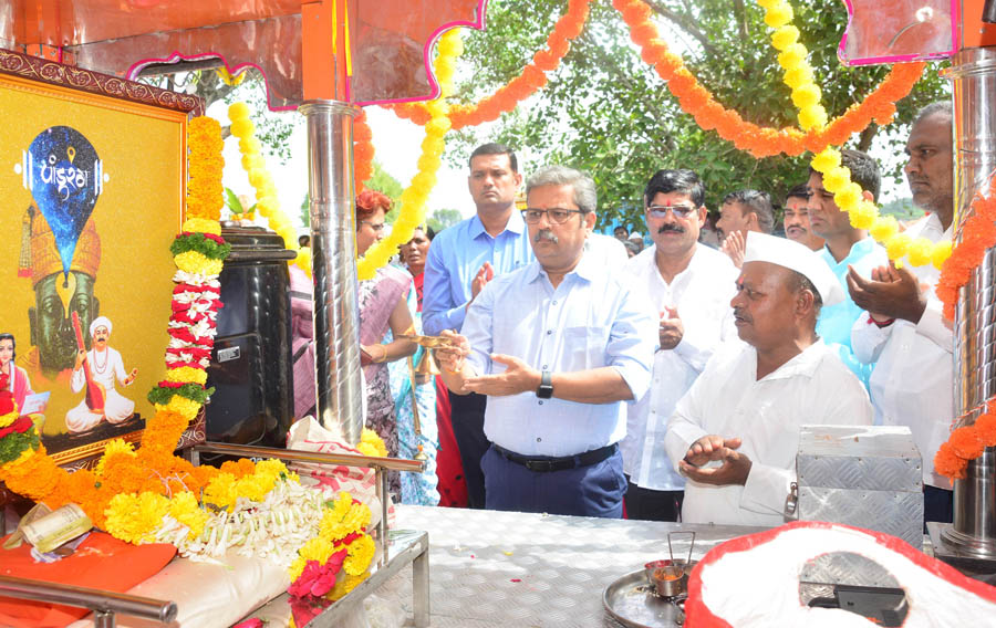 प्रारंभी जिल्हाधिकारी सिध्दाराम सालीमठ यांच्या हस्ते दिंडीतील पालखीचे पूजन करुन आरती करण्यात आली. यावेळी विभाग नियंत्रक राज्य परिवहन महामंडळाच्या मनीषा सपकाळ, उपविभागीय अधिकारी सुधीर पाटील, प्रसिद्ध उद्योजक नरेंद्र फिरोदिया आदी उपस्थित होते.