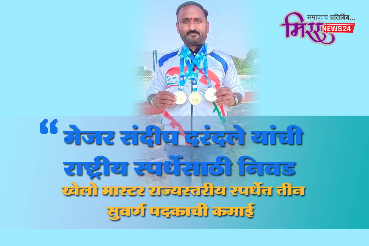 अहमदनगर (प्रतिनिधी)- शहरातील क्रीडा शिक्षक मेजर संदीप दरंदले यांनी खेलो मास्टर राज्यस्तरीय अॅथलेटिक्स स्पर्धेत उत्कृष्ट खेळाचे प्रदर्शन करुन तीन सुवर्णपदकाची कमाई केली. त्यांची राष्ट्रीय स्पर्धेसाठी निवड करण्यात आली आहे.