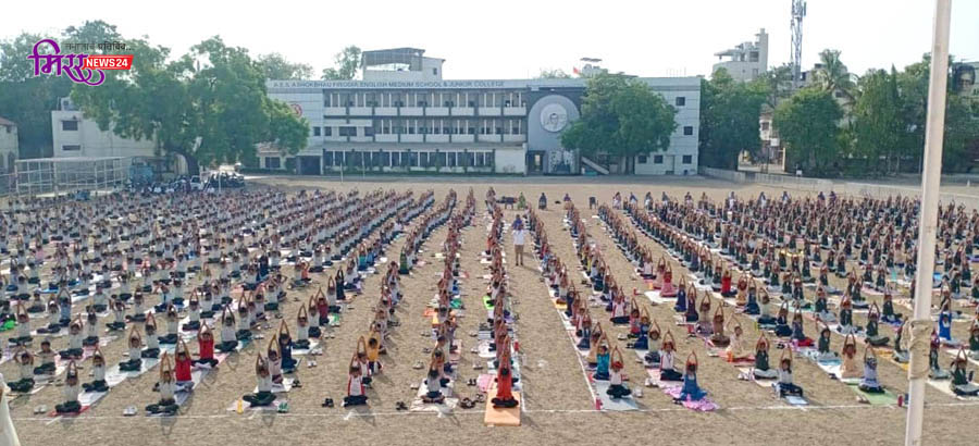 अहमदनगर (प्रतिनिधी)- शहरातील अ.ए.सो. च्या रुपीबाई मोतीलालजी बोरा माध्यमिक व उच्च माध्यमिक विद्यालयात दीड हजार विद्यार्थ्यांच्या उपस्थितीमध्ये आंतरराष्ट्रीय योग दिवस साजरा करण्यात आला. विद्यार्थ्यांना योग व प्राणायामाचे प्रात्यक्षिकासह शास्त्रोक्त पद्धतीने धडे देऊन त्याचे महत्त्व सांगण्यात आले. विद्यार्थ्यांनी देखील योगाचे विविध आसने उत्तमपणे सादर केले.