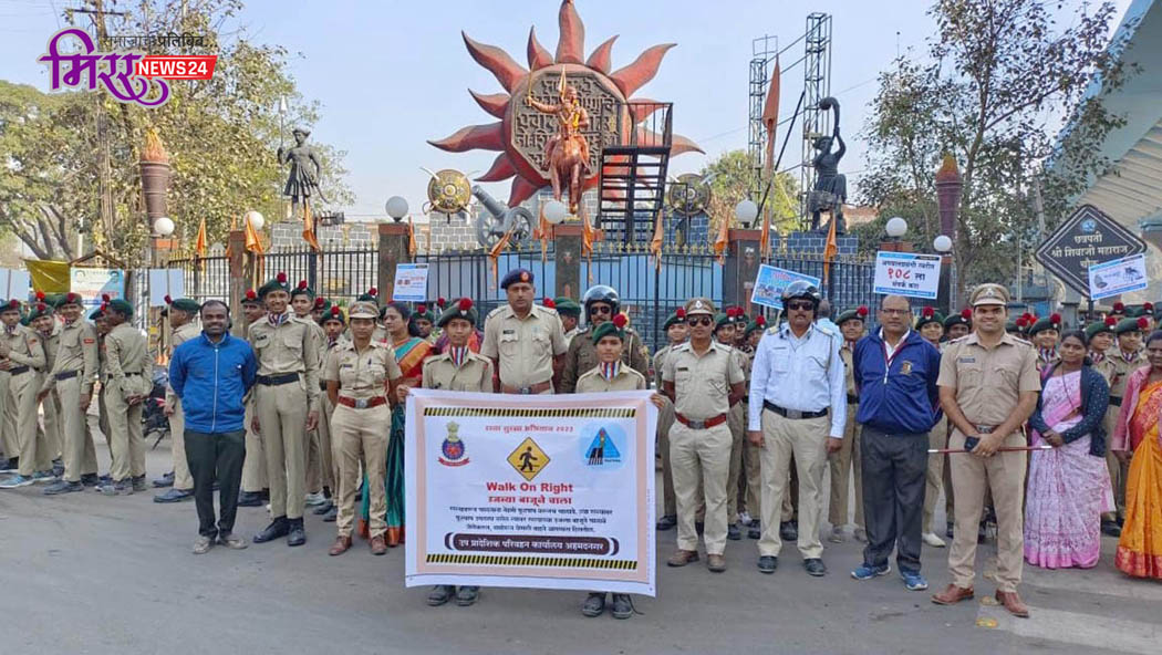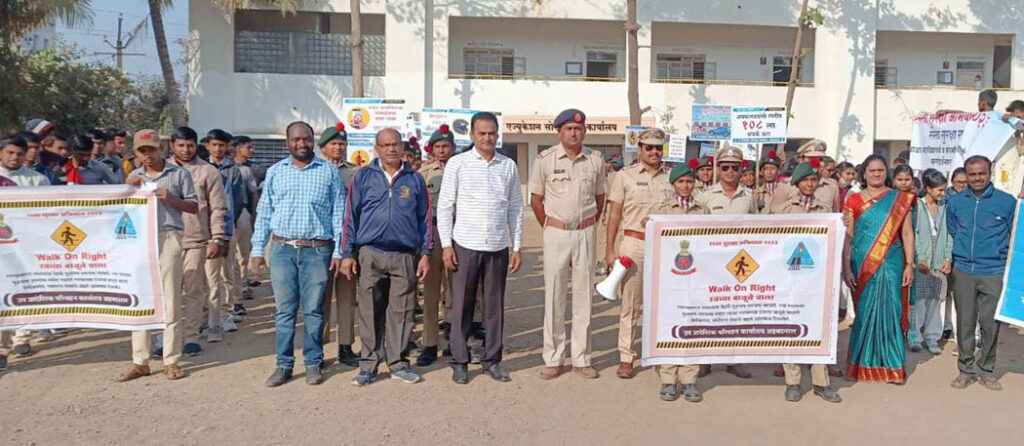 रस्ता सुरक्षेबाबत लोकांमध्ये जनजागृती व्हावी या उद्देशाने 11 ते 17 जानेवारी या कालावधीत रस्ता सुरक्षा सप्ताह साजरा होत आहे. वॉक ऑन राईट या संकल्पनेतून विद्यालयातील विद्यार्थ्यांची रॅली काढून नागरिकांमध्ये वाहतुकीच्या नियमांचे पालन करण्याविषयी जागृती केली.
