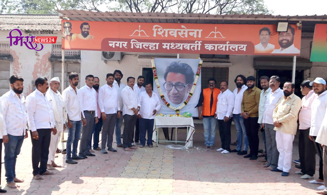 अहमदनगर (प्रतिनिधी)- शहरात शिवसेनेच्या (बाळासाहेबांची) वतीने हिंदुह्रद्यसम्राट शिवसेनाप्रमुख स्व. बाळासाहेब ठाकरे यांच्या जयंतीनिमित्त त्यांच्या प्रतिमेस पुष्पहार अर्पण करुन अभिवादन करण्यात आले. आयटीआय महाविद्यालय जवळील शिवसेनेच्या मध्यवर्ती जिल्हा कार्यालयात अभिवादन कार्यक्रमाचे आयोजन करण्यात आले होते. यावेळी स्व. बाळासाहेब ठाकरे यांच्या स्मृतीस अभिवादन करुन त्यांच्या विचारांचा जागर करण्यात आला.