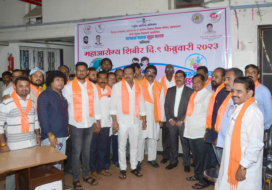 अहमदनगर (प्रतिनिधी)- शिवसेनेच्या (बाळासाहेबांची) वतीने मुख्यमंत्री ना. एकनाथ शिंदे यांचा वाढदिवस आरोग्य दिन म्हणून साजरा करण्यात आला. जिल्ह्यात मोफत आरोग्य शिबिर, रक्तदान शिबिर व विविध सामाजिक उपक्रम राबविण्यात आले. अहमदनगर जिल्हा रुग्णालयात बुधवारी (दि.9 फेब्रुवारी) महाआरोग्य शिबिराचे उद्घाटन शिवसेनेचे जिल्हाप्रमुख अनिल शिंदे यांच्या हस्ते झाले. यावेळी जिल्हा शल्य चिकित्सक डॉ. संजय घोगरे, अतिरिक्त जिल्हा शल्यचिकित्सक डॉ. मनोज घुले, शहर प्रमुख दिलीप सातपुते, संपर्कप्रमुख सचिन जाधव, बाबुशेठ टायरवाले, अनिल लोखंडे, संग्राम शेळके, योगेश गलांडे, महेश लोंढे, अभिषेक भोसले, अक्षय कातोरे, ओंकार शिंदे, गौरव शिंदे, काका शेळके, आनंदराव शेळके, अनिकेत कराळे, रणजीत परदेशी, प्रल्हाद जोशी, चंद्रकांत उजागरे, किरण उनवणे, पोपटराव पाथरे, शशांक महाले, राज कोंडके, दामोदर भालसिंग, बाबू काकडे आदींसह पदाधिकारी व कार्यकर्ते मोठ्या संख्येने उपस्थित होते.