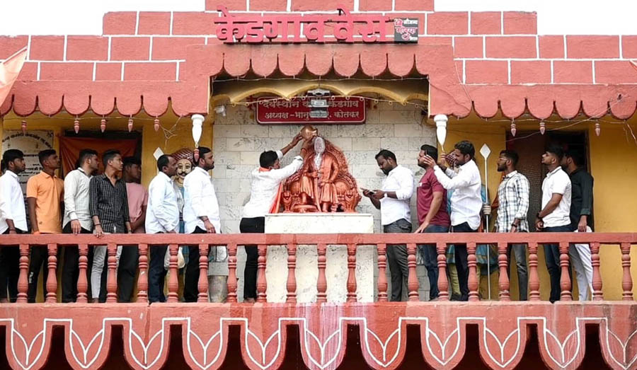 महाराजांच्या पुतळ्यास दुग्धाभिषेक
