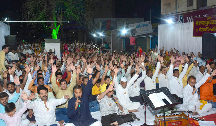 हनुमान जयंतीच्या पार्श्वभूमीवर राधा-कृष्ण मंदिराच्या प्रांगणात हा धार्मिक सोहळा रंगला होता. रात्री उशीरा पर्यंत भजन संध्येने या कार्यक्रमाची रंगत वाढविल्याने संपूर्ण परिसर भक्तीमय बनले होते. भगवान श्रीरामच्या आकर्षक मुर्तीने सर्वांचे लक्ष वेधले. सामूदायिक हनुमान चालिसा पठणाने भावभक्तीचा महोत्सवात भाविक तल्लिन झाले होते.