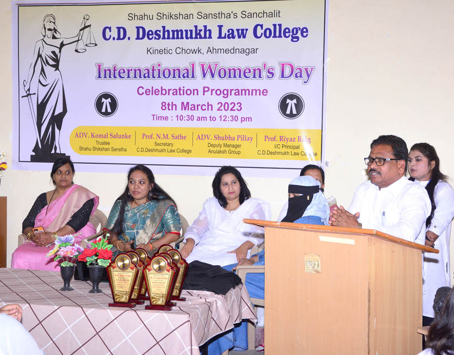 सी.डी. देशमुख लॉ कॉलेजमध्ये जागतिक महिला दिनानिमित्त विविध क्षेत्रातील कर्तृत्ववान महिलांचा सन्मान व संवाद कार्यक्रम पार पडला. यावेळी अ‍ॅड. गायकवाड बोलत होत्या. संस्थेचे सचिव ना.म. साठे यांच्या अध्यक्षतेखाली हा कार्यक्रम पार पडला.
