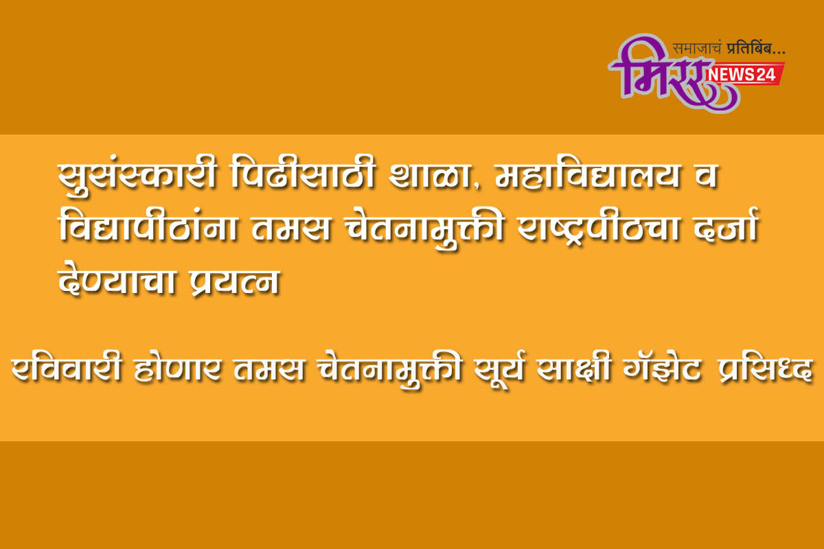 सुसंस्कारी पिढीसाठी शाळा, महाविद्यालय व विद्यापीठांना तमस चेतनामुक्ती राष्ट्रपीठचा दर्जा देण्याचा प्रयत्न