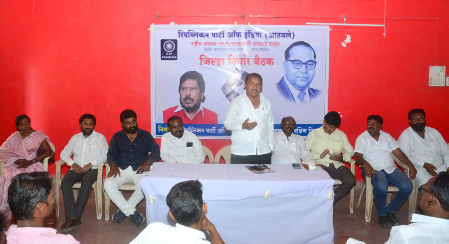 शहराच्या टिळक रोड येथील श्रमिक कार्यालयात संपर्क प्रमुख श्रीकांत भालेराव व राज्य उपाध्यक्ष विजय वाकचौरे यांच्या प्रमुख उपस्थितीमध्ये निर्धार बैठक पार पडली. अजय साळवे यांच्या अध्यक्षतेखाली झालेल्या बैठकीप्रसंगी राज्य सचिव दिपक गायकवाड, राजाभाऊ कापसे, विभागीय जिल्हाप्रमुख भिमराज बागुल, उत्तर जिल्हाध्यक्ष सुरेंद्र थोरात, दक्षिण जिल्हाध्यक्ष संजय भैलुमे, युवक जिल्हाध्यक्ष अमित काळे, पारनेर तालुकाध्यक्ष राजु उबाळे, श्रीगोंदा तालुकाध्यक्ष राजा जगताप, पाथर्डी तालुकाध्यक्ष बाबा राजगुरू, शेवगाव तालुकाध्यक्ष सतीश मगर, नगर तालुकाध्यक्ष चंद्रकांत ठोंबे, महिला जिल्हाध्यक्ष जयाताई गायकवाड, कविता नेटके, विनोद भिंगारदिवे, प्रा. विलास साठे, मंगेश मोकळ, दया गजभिये, आकाश बडेकर, निखिल सुर्यवंशी आदींसह जिल्ह्यातील पदाधिकारी व कार्यकर्ते मोठ्या संख्येने उपस्थित होते.