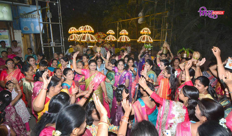 भक्तिगीतांच्या तालावर युवकांचा उत्साह ओसंडून वाहत होता. महिलांनी पारंपरिक पोशाखात फुगड्यांचा फेर धरला होता. मिरवणुकीभोवती मांडलेल्या छत्रींवर आकर्षक विद्युत रोषणाई सर्वांचे लक्ष वेधणारी ठरली. ढोल-ताशांच्या निनादाने संपूर्ण परिसर भक्तिमय बनला होता.