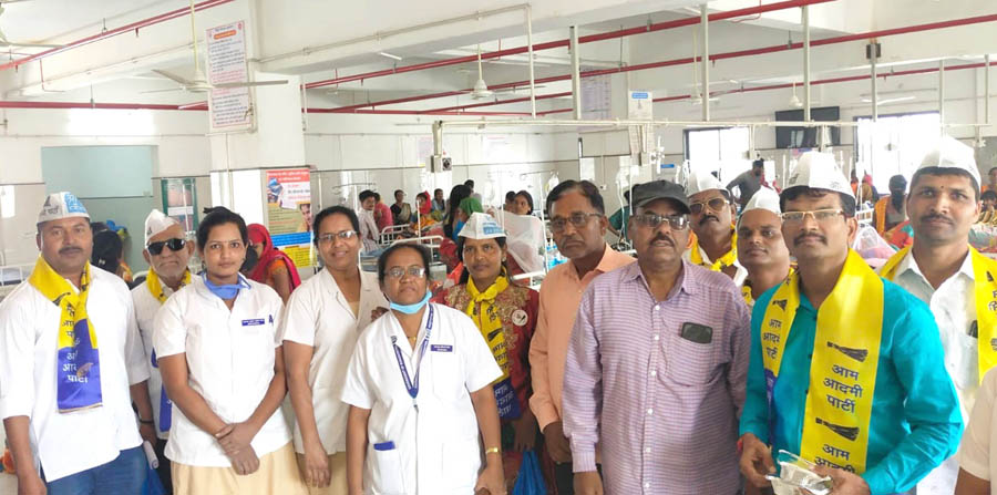 रुग्णालयात घरापासून लांब असलेल्या सर्वसामान्यांची दिवाळी गोड करण्याच्या उद्देशाने हा उपक्रम राबविण्यात आला. यावेळी जिल्हा रुग्णालयाच्या सीएमो डॉ. वाघ, दत्तात्रय आंबेकर, आम आदमी पार्टीचे शहर जिल्हाध्यक्ष भरत खाकाळ, महिला अध्यक्षा विद्या शिंदे, प्राध्यापक अशोक डोंगरे, उपाध्यक्ष गणेश मारवाडे, उपाध्यक्ष सिताराम खाकाळ, युवा आघाडी अध्यक्ष अनिल साळवे, शेतकरी आघाडी अध्यक्ष काकासाहेब खेसे, पूर्वसैनिक आघाडीचे सोमनाथ काळे, कला सांस्कृतिक आघाडीचे अध्यक्ष प्रकाश वडवणीकर, विजय लोंढे, मेजर शिवाजी वेताळ, व्यापारी आघाडी अध्यक्ष राजेंद्र सामाल आदी उपस्थित होते.