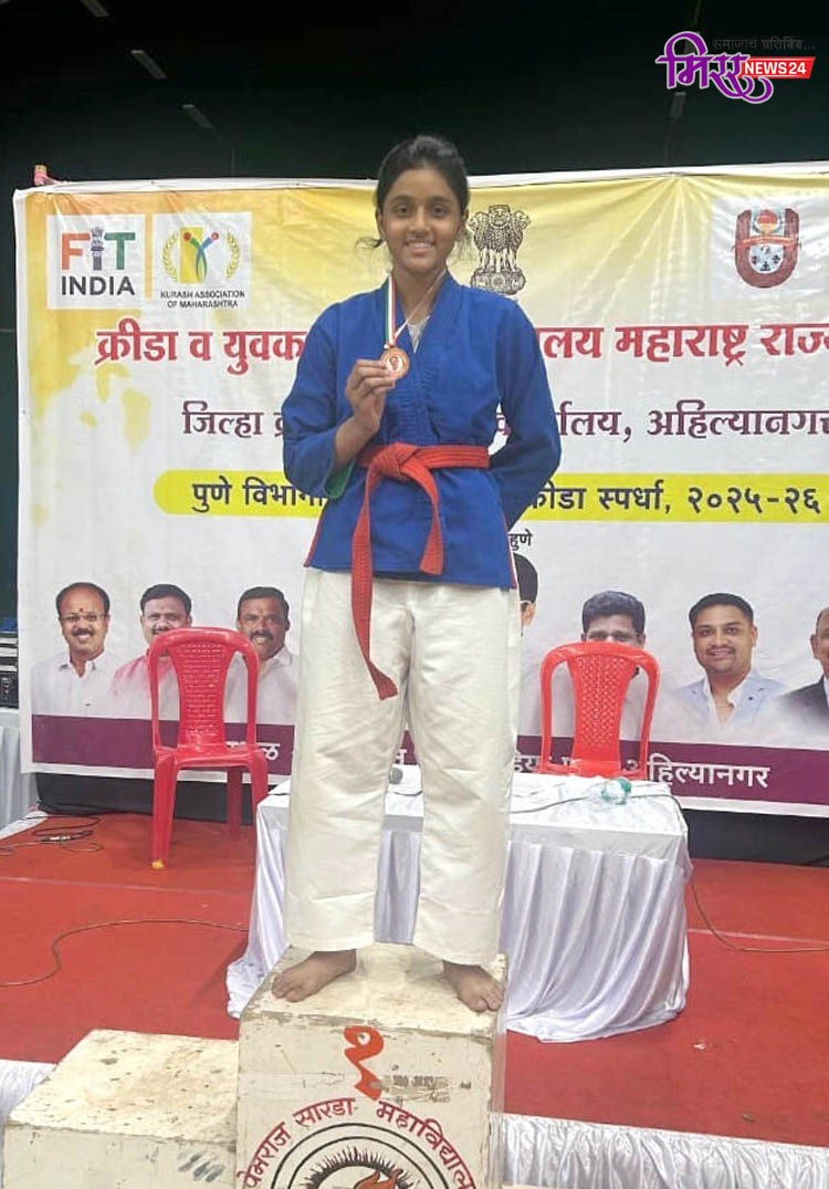 शालेय विभागीय कुराश स्पर्धेत आरुषी लांडगे ने पटकाविले सुर्वण पदक
