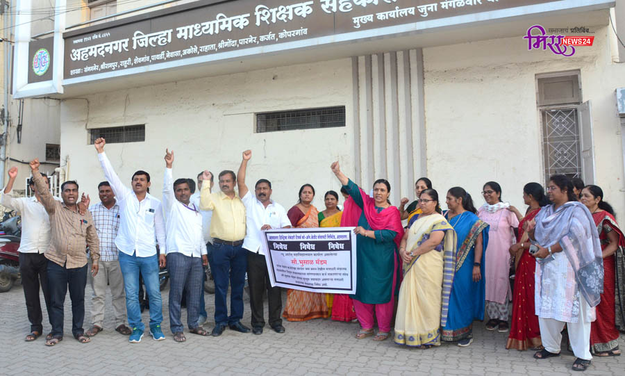 अहमदनगर (प्रतिनिधी)- दवाखान्यातील उपचारासाठी माध्यमिक शिक्षक सोसायटीत दाखल केलेले सभासदाचे कर्ज प्रकरण मंजूर झाल्याचे सांगून, त्या व्यक्तीच्या मरेपर्यंत कर्जाची रक्कम रोखून धरल्याच्या निषेधार्थ विरोधी संचालक व न्यू आर्टस कॉमर्स ॲण्ड सायन्स महाविद्यालयाच्या प्राध्यापक, प्राध्यापिकांनी माध्यमिक शिक्षक सोसायटी समोर निदर्शने केली. सोसायटीच्या अनागोंदी व निष्क्रियतेचा निषेध नोंदवून धिक्कार करण्यात आला.