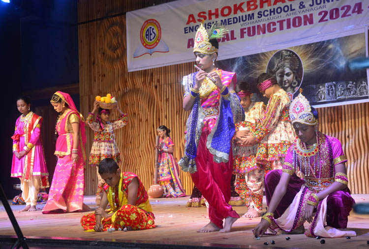 गणेश वंदनेने कार्यक्रमाचा प्रारंभ झाला. स्त्री निर्मित ब्रह्मा, विष्णू, महेशाचे सादरीकरण नमस्तुते परमशक्तीद्वारे दाखविण्यात आले. तर शक्ती पिठाचे दर्शन घडवित महिषासुर मर्दिनीचे रुपाचे साक्षात्कार विद्यार्थ्यांनी घडविले. चलो बुलावा आया है!…. या गीताने वातावरण भक्तीमय बनले होते. कंसाचा अत्याचार…, देवकी यशोदा यांना अपत्य प्राप्तीतून झालेला श्रीकृष्ण जन्म…. श्रीकृष्ण लीलेतून द्वापारयुगात विद्यार्थ्यांनी प्रेक्षकांना घेऊन गेले. गांधारी, कुंती, द्रोपदी यांचे पात्र साकारण्यात आले होते. या कार्यक्रमातून भक्तीची ज्योत पेटवण्यात आली.