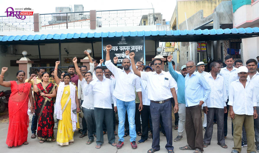 अहमदनगर (प्रतिनिधी)- लाल बावटा जनरल कामगार युनियन संलग्न अवतार मेहेरबाबा कामगार युनियन व ट्रस्टच्या नवीन करारसंदर्भात चार ते पाच वेळा सुनावणी होऊन देखील पगारवाढीवर तोडगा निघत नसल्याने संतप्त कामगारांनी सहाय्यक कामगार आयुक्त यांच्या कार्यालयापुढे निदर्शने केली. तर ट्रस्टने 3 टक्क्यांची दिलेली पगारवाढची ऑफर धुडकावून लावत, महागाईच्या काळात जीवन जगण्यासाठी व मुला-बाळांच्या शिक्षणासाठी योग्य पगारवाढ देण्याची मागणी युनियनच्या वतीने करण्यात आली आहे.