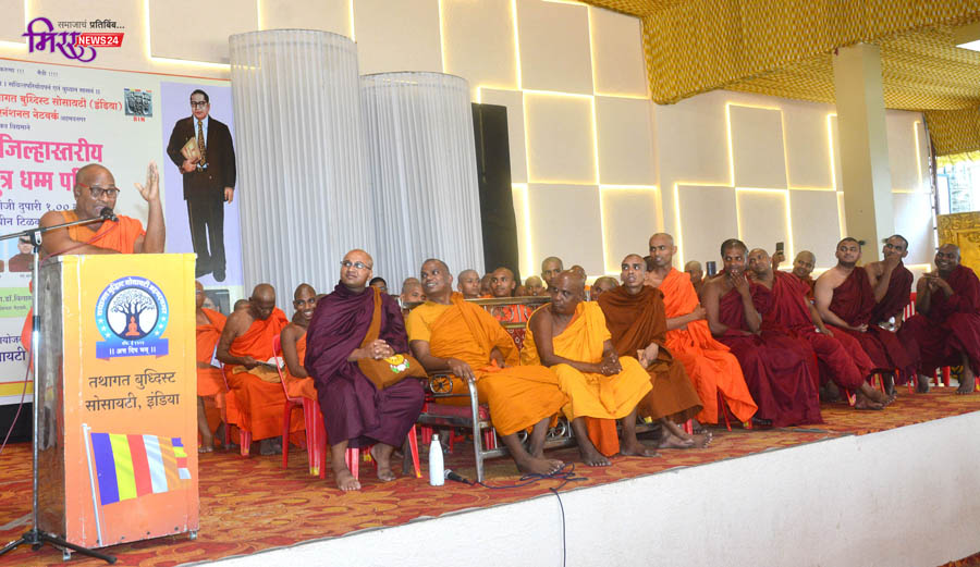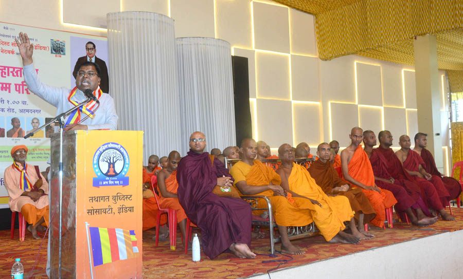 अहमदनगर जिल्हा भिक्खू संघ, तथागत बुद्धिस्ट सोसायटी (इंडिया) व बुद्धिस्ट इंटरनॅशनल नेटवर्क यांच्या संयुक्त विद्यमाने शहरात दहा दिवसीय निशुल्क श्रामणेर विधीकर्ता शिबिराचा समारोप व जिल्हास्तरीय पहिली भूमिपुत्र धम्म परिषदेत मार्गदर्शन करताना भन्ते राहुल बोलत होते. यावेळी बुद्धिस्ट इंटरनॅशनल नेटवर्कचे राष्ट्रीय अध्यक्ष प्रा. डॉ. विलास खरात, भन्ते सचितबोधी, तथागत बुद्धिस्ट सोसायटीचे अध्यक्ष संजय कांबळे, संस्थेचे कायदे सल्लागार ॲड. संतोष गायकवाड, शिवाजी भोसले, दिपक अमृत, रंगनाथ माळवे, बाळासाहेब कांबळे, विशाल कांबळे, श्रीकांत देठे, अण्णा गायकवाड, विजितकुमार ठोंबे, मिंलिद आंग्रे, प्रकाश कांबळे, संतोष गायकवाड, सुनिल पंडित, प्रविण साळवे, मेहेर भिंगारदिवे, प्रमोद शिंदे, अकाश परदेशी, बाळासाहेब धीवर, गौतम पगारे, शांताराम रनशुर, विजय खंडीजोड, बीपीन गायकवाड, दिपक साठे, डॉ. सिताताई भिंगारदिवे, संध्या मेढे, मायाताई जाधव, गौतमी भिंगारदिवे, आरती बडेकर, पद्मा कांबळे, आशा परदेशी, इंदुबाई कोरे, मंदा शिंदे, सत्यभामा साळवे, डॉ. भास्कर रननवरे, रमेश पगारे, रामदास धिवर, संजय शिंदे, सुहास सोनवणे, नाथा भिंगारदिवे, दिपक पाटोळे, रविंद्र कांबळे, संजय भिंगारदिवे, हिरालाल भिंगारदिवे, शांताराम बनसोडे, डॉ. विश्वास गायकवाड, करण पाचरणे, गोरख केदारे, अशोक बागुल आदींसह उपासक, उपासिका मोठ्या संख्येने उपस्थित होते.