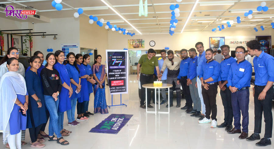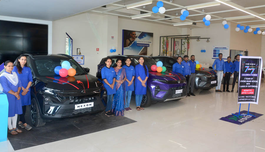 वाजिद शेख अहमदनगर (प्रतिनिधी)- भारतातील आघाडीची ऑटोमोटिव्ह उत्पादक कंपनी असलेल्या टाटा मोटर्सने लॉन्च केलेल्या नेक्सॉनची 7 वर्षात 7 लाख वाहन विक्रीचा विक्रमी टप्पा गाठला असून, देशातील नंबर एकची एसयूव्ही कारचा बहुमान मिळवला असताना देशभर टाटा मोटर्सच्या शोरुममध्ये उत्सव सुरु आहे. या पार्श्‍वभूमीवर एमआयडीसी नगर-मनमाड रोड येथील कामू मोटर्स (मॅक्स मोटर्स) टाटा शोरुमध्ये हा उत्सव साजरा करुन ग्राहकांसाठी 1 लाख रुपया पर्यंतचा डिस्काऊंट ऑफर जाहीर करण्यात आला.