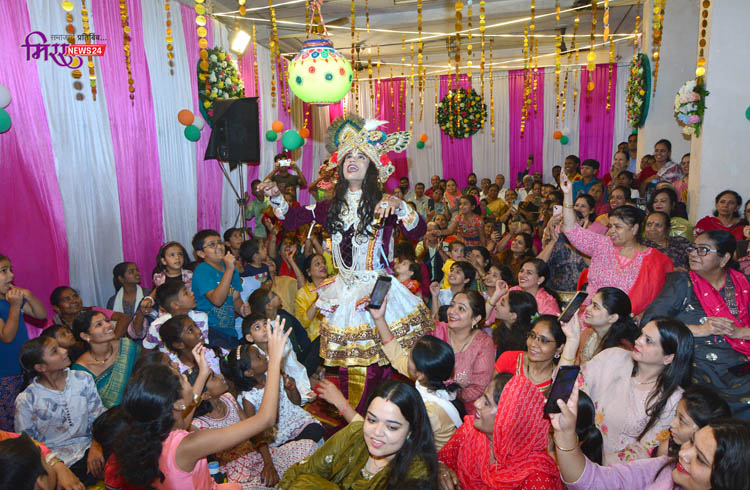 शुक्रवारी रात्री झालेल्या कार्यक्रमात बबलू दुग्गल व त्यांच्या सहकलाकारांनी राधा-कृष्णवर एकाहून एक सरस भक्तीगीते सादर केली. भक्तीगीतांनी बहरलेल्या कार्यक्रमाचा भाविकांनी मनमुराद आनंद लुटला. यावेळी कृष्ण लीलाचे सादरीकरण करण्यात आले. कृष्ण व सुदामा भेट व राधा-कृष्ण रासलीलेचा जीवंत देखाव्याने भाविक मंत्रमग्ध झाले. याप्रसंगी शीख, पंजाबी समाज बांधवांसह महिला मोठ्या संख्येने उपस्थित होत्या. राधा-कृष्णच्या वेशभुषेत अवतरलेल्या युवतींनी सर्वांचे लक्ष वेधले व विविध भक्तीगीतांवर नृत्याचे सादरीकरण केले. राधा-कृष्णवर भक्तीगीतांनी बहरलेल्या कार्यक्रमात भाविकांनी देखील ठेका धरला होता. भजनाने वातावरण भक्तीमय बनले होते. गोविंद बोलो, हरि गोपाळ बोलो… भजन सादर करुन रात्री 12 वाजता मंदिरातील पाळणा हलविण्यात आला. सजवलेल्या पाळण्यात भगवान श्रीकृष्णची प्रतिमा ठेवण्यात आली होती. पाळणा हलवून श्रीकृष्णची आरती करण्यात आली. यावेळी शहरातील भाविकांनी दर्शनासाठी मोठी गर्दी केली होती.