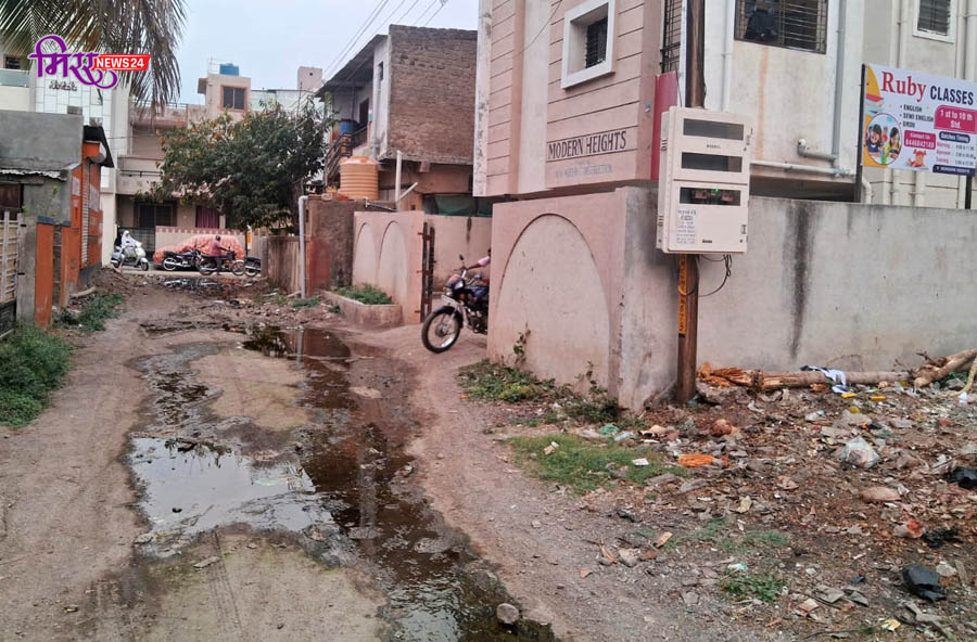 नागरिकांच्या घरासमोर साचले घाण पाण्याचे डबके; रस्त्याच्या कामासाठी ठेकेदाराने तोडली पाण्याची लाईन