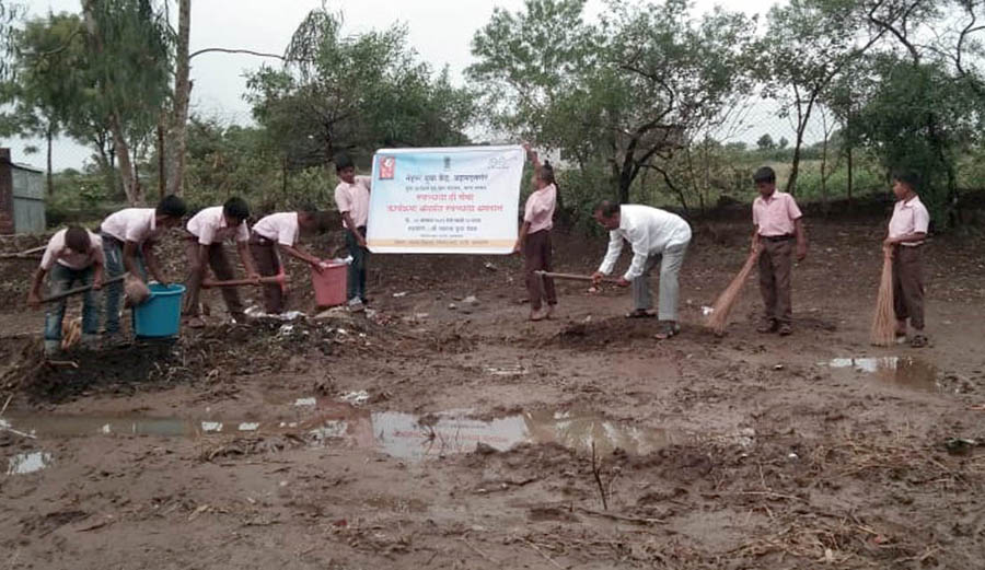 सकाळी विद्यार्थी, शिक्षक, शिक्षकेतर कर्मचारी व संस्थेचे पदाधिकारी हातात झाडू घेऊन स्वच्छतेला प्रारंभ केले. शाळेचा परिसराची स्वच्छता करुन, श्रमदानाने परिसरात वाढलेला गवत, काटेरी झाडे-झुडपे हटविण्यात आली. आरोग्यासाठी सार्वजनिक स्वच्छतेचे महत्त्व व प्लास्टिकच्या कचऱ्यामुळे पर्यावरणाची होणारी हानी याबद्दल विद्यार्थ्यांचे प्रबोधन करण्यात आले.