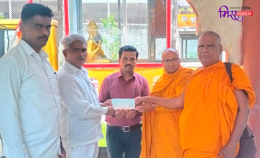 वाजिद शेख अहमदनगर (प्रतिनिधी)- शहरातील तथागत बुद्धिस्ट सोसायटी (इंडिया) च्या वतीने धम्मतारा बुध्द विहारसाठी धम्म दान करण्यात आले. धम्मतारा बुध्द विहाराचे समन्वयक संतोषकुमार कदम यांच्याकडे धम्म दानचा धनादेश भन्ते सचितबोधी, भन्ते दिपरत्न, तथागत बुद्धिस्ट सोसायटीचे अध्यक्ष संजय कांबळे, विजितकुमार ठोंबे यांच्या प्रमुख उपस्थितीमध्ये प्रदान करण्यात आला.