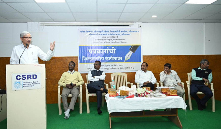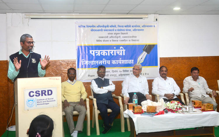 नाशिक विभागीय अधिस्वीकृती समिती, जिल्हा माहिती कार्यालय आणि सीएसआरडी महाविद्यालय यांच्या संयुक्त विद्यमाने मंगळवारी सीएसआरडी संस्थेच्या सभागृहात विकास पत्रकारिता व पत्रकारांसाठीच्या विविध शासकीय योजना या विषयावर कार्यशाळा झाली.