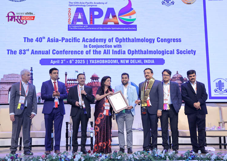नगर (प्रतिनिधी)- अहिल्यानगरचे नेत्ररोगतज्ज्ञ डॉ. सौरभ हराळ यांना दिल्ली येथे झालेल्या आशिया-पॅसिफिक अकादमी ऑफ ऑप्थाल्मोलॉजी (एपीएओ) परिषदेत यंग रिसर्चर ॲवॉर्डने सन्मानित करण्यात आले. त्यांच्या डोळ्यांच्या ॲलर्जीवरील (आय ॲलर्जी) नवीन उपचार पद्धतीच्या संशोधनासाठी हा पुरस्कार प्रदान करण्यात आला.