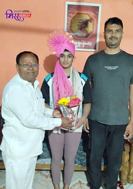 अहिल्यानगर (प्रतिनिधी)- नेप्ती (ता. नगर) येथील महिला कुस्तीपटू कु. गायत्री शिवाजी खामकर हिने खोपोली (जि. रायगड) येथे पार पडलेल्या राज्यस्तरीय शालेय कुस्ती स्पर्धेत उत्कृष्ट कामगिरी करत रौप्य पदक पटकावले. तिच्या या उल्लेखनीय यशाबद्दल नगर तालुका तालिम सेवा संघ, स्व. पै. किसनराव डोंगरे बहुद्देशीय संस्था, श्री नवनाथ युवा मंडळ व पै. नाना डोंगरे व्यायाम शाळेच्या वतीने तिचा सामाजिक कार्यकर्ते तथा तालिम सेवा संघाचे अध्यक्ष पै. नाना डोफ्लगरे यांनी सत्कार केला. यावेळी शिवाजी खामकर उपस्थित होते.