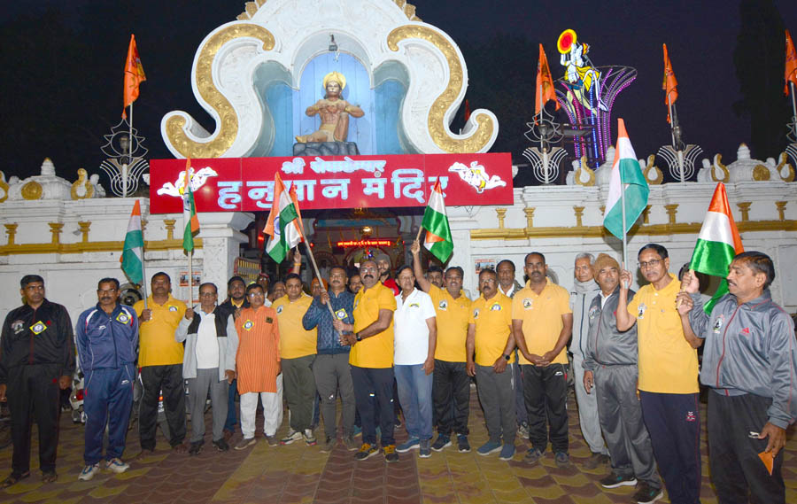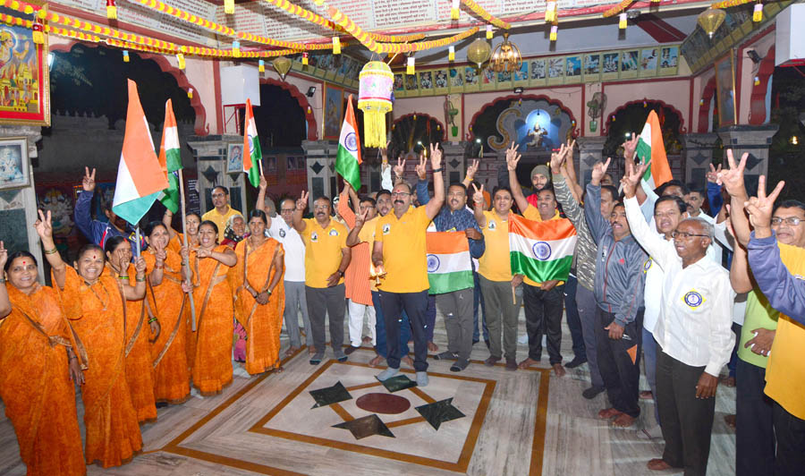 पूजेनंतर हातात तिरंगे ध्वज घेऊन भारत माता की जय…, वंदे मातरम… जीतेंगा भाई जीतेंगा भारत जीतेंगाच्या घोषणानी परिसर दणाणून निघाला.