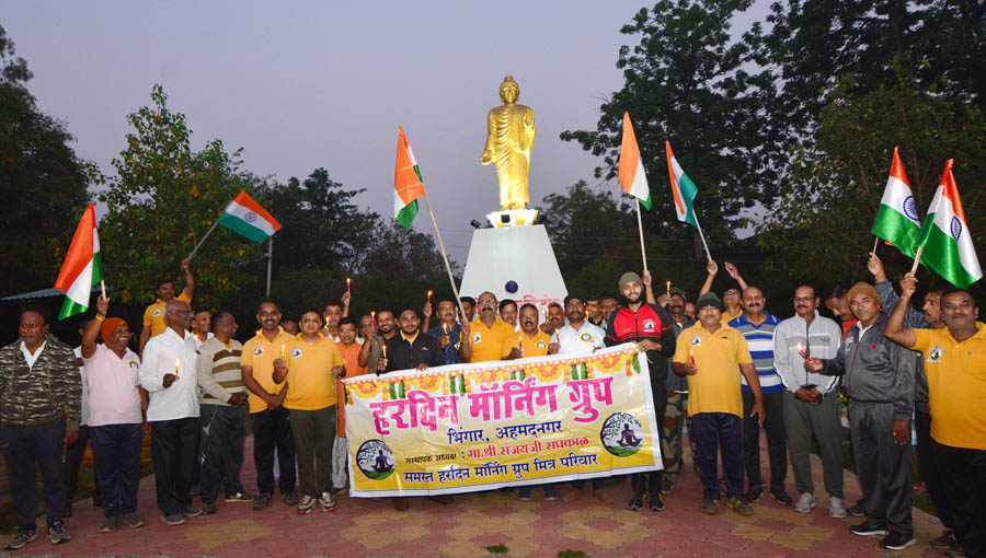 हरदिन मॉर्निंग ग्रुपच्या सदस्यांचा हातात तिरंगा घेऊन शंखनाद