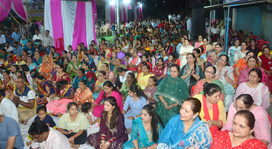 तेरे रहमो करम का क्या कहना…, मईया देनेवाली है हम लेने वाले है…, जब से नैन लडे गिरधारी से…, रामजी की निकली सवारी…, सीने मे मेरे सिताराम बसते… अशा अभंग, गवळणी व भक्ती गीतांनी ही भजन संध्या उत्तरोत्तर रंगली. राम सियाराम, राम लक्ष्मण जानकी जय बोलो हनुमान की… या भजनानेही भाविक मंत्रमुग्ध झाले. कार्यक्रमात हनुमानजीच्या वेशभुषेतील युवकाने सर्वांचे लक्ष वेधले. हनुमानजीच्या आरतीने कार्यक्रमाची सांगता झाली.