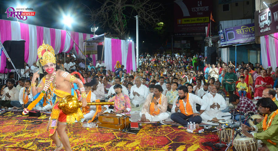 श्रीराम भक्त हनुमान सत्संग मंडळ ट्रस्टच्या कलाकारांनी या भजन संध्येच्या कार्यक्रमात रंग भरला होता. संपूर्ण परिसर या सोहळ्याने भक्तीमय बनला होता. जय हनुमान ज्ञान गुण सागर जय कपीस तिहु लोक उजागर, या हनुमान चालीसाच्या विविध चालीतील गायनाने कार्यक्रमात भक्तीचे रंग उधळले. नागरिकांनी सामुदायिक पठणात उत्स्फूर्तपणे सहभाग घेऊन भक्तीगीतांवर ठेका धरला होता. हनुमान चालीसा गायन व विविध भजने, भक्ती गीतामध्ये उपस्थित भाविक तल्लिन झाले होते.