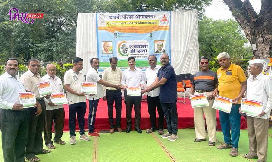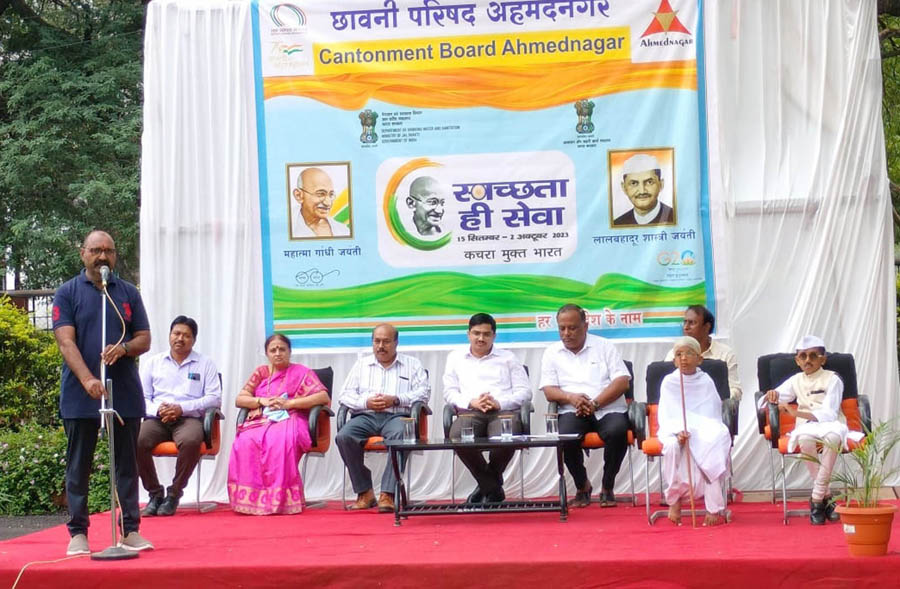 महात्मा गांधीजी यांच्या जयंतीच्या पार्श्वभूमीवर छावणी परिषदने 15 सप्टेंबर ते 2 ऑक्टोबर दरम्यान राबविलेल्या स्वच्छता पंधरवाड्याचा समारोप सोमवारी (दि.2 ऑक्टोबर) महात्मा गांधीजी यांच्या जयंती दिनी झाला. भिंगार छावणी परिषदेत झालेल्या या कार्यक्रमात हरदिनचे संस्थापक अध्यक्ष संजय सपकाळ यांचा छावणी परिषदेचे मुख्यकार्यकारी अधिकारी विक्रांत मोरे यांनी सन्मानपत्र देऊन त्यांचा सत्कार केला. तसेच ग्रुपच्या सदस्यांना प्रमाणपत्र देण्यात आले. यावेळी छावणी परिषदेचे सदस्य वसंत राठोड, स्नेहबंध फाउंडेशनचे अध्यक्ष डॉ. उध्दव शिंदे, स्वच्छता निरीक्षक रमेश साके, गणेश भोर, इंजि. महेंद्र सोनवणे, अशोक फुलसौंदर, संजय शिंदे, राजेंद्र भोसले, अरविंद कुडिया, पारनाईक मॅडम, पीस फाउंडेशनचे संस्थापक अध्यक्ष जोसेफ पाटोळे, शोभा पाटोळे, रमेश वराडे, दिलीप ठोकळ, दिपकराव बडदे, उमेश केदारे, सर्वेश सपकाळ, अविनाश पोतदार, अशोक पराते, अभिजीत सपकाळ, तुषार घाडगे, कैलास बिडवे, मुरलीधर बरबडे आदी उपस्थित होते.