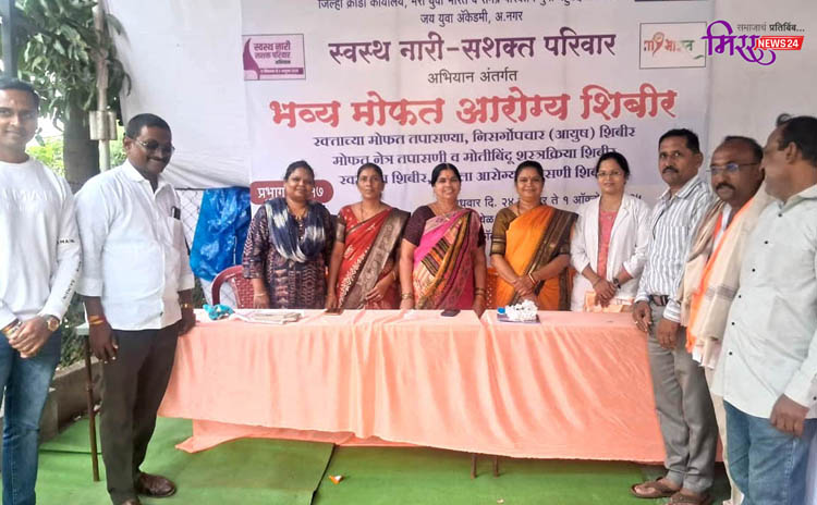 अहिल्यानगर (प्रतिनिधी)- केडगाव देवी रोड येथील एकता कॉलनीमध्ये जिल्हा क्रीडा कार्यालय व कल्पद्रुम फाउंडेशन यांच्या संयुक्त विद्यमाने मोफत आरोग्य शिबिर घेण्यात आले. या शिबिरास परिसरातील ग्रामस्थ, विशेषतः महिलांचा उत्स्फूर्त प्रतिसाद लाभला.