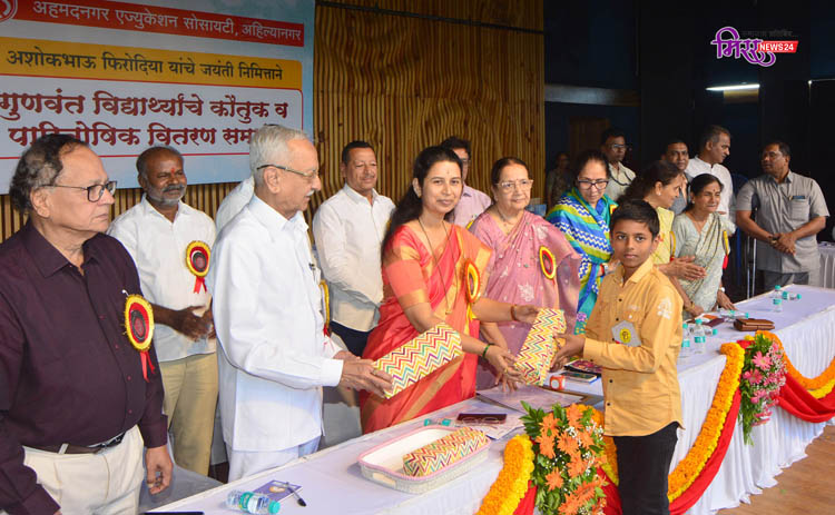 अहमदनगर एज्युकेशन सोसायटीचे माजी प्रमुख कार्यवाह स्व. अशोकभाऊ फिरोदिया यांच्या जयंतीनिमित्त संस्थेमधील सर्व शाळांमधील गुणवंत विद्यार्थ्यांच्या गुणगौरव व पारितोषिक वितरण समारंभाच्या अध्यक्षीय भाषणात शिक्षणाधिकारी गायकवाड बोलत होत्या. या कार्यक्रमास संस्थेच्या प्रमुख कार्यवाह छायाताई फिरोदिया, उपाध्यक्ष अशोक मुथा, सहकार्यवाह गौरव फिरोदिया, खजिनदार प्रकाश गांधी, सल्लागार मंडळाचे सदस्य आशाताई फिरोदिया, भूषण भंडारी, शैलेश मुनोत, पुष्पाताई फिरोदिया, तसेच मिनाताई बोरा, रविंद्र बाकलीवाल, जालिंदर बोरुडे, भाऊसाहेब फिरोदिया हायस्कूलचे मुख्याध्यापक उल्हास दुगड, अशोकभाऊ फिरोदिया हायस्कूलचे मुख्याध्यापक प्रभाकर भाबड, रुपीबाई मोतीलालजी बोरा न्यू इंग्लिश स्कूलचे मुख्याध्यापक अजय बारगळ आदींसह संस्थेच्या सर्व शाळांचे मुख्याध्यापक, पर्यवेक्षक, शिक्षक व शिक्षकेत्तर कर्मचारी, विद्यार्थी, पालक प्रतिनिधी मोठ्या संख्येने उपस्थित होते.
