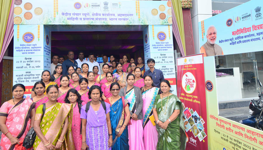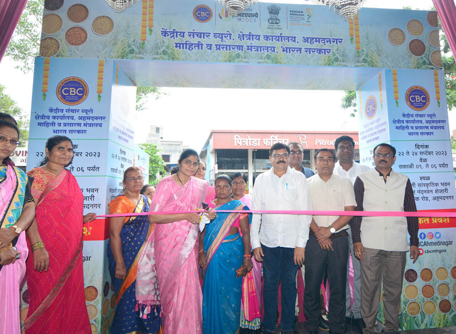 रविवार 24 सप्टेंबर पर्यंत चालणाऱ्या या प्रदर्शनात सर्व आजारांना दूर ठेवणाऱ्या पौष्टीक धान्य आणि त्या धान्यांपासून तयार करण्यात आलेल्या चविष्ट पदार्थांसह सकस आहारांची माहिती, छायाचित्र आणि चित्रफितींच्या (व्हीडीओ) माध्यमातून देण्यात येत आहे. माहिती आणि प्रसारण मंत्रालयाच्या अमहदनगर येथील केंद्रीय संचार ब्यूरोच्यावतीने या प्रदर्शनाचे आयोजन करण्यात आले आहे. या उद्घाटन कार्यक्रमाप्रसंगी जिल्हा माहिती अधिकारी डॉ. रविंद्र ठाकूर, माहिती अधिकारी अमोल महाजन, महिला आर्थिक विकास महामंडळाचे जिल्हा कार्यक्रम समन्वयक संजय गर्जे, उमेदचे सहायक प्रकल्प संचालक सोमनाथ जगताप, एकात्मिक बालविकास प्रकल्प अधिकारी सुधीर पाटील. सय्यद शफिक, प्रसिध्दी अधिकारी माधव जायभाये, सहायक प्रसिध्दी अधिकारी पी. कुमार, निवृत्त वरिष्ठ बँक अधिकारी तथा योग शिक्षण विनायक पवळे, दूरदर्शन प्रतिनिधी मनोज सातपूते यांच्यासह शहरातील बालविकास प्रकल्प कार्यालयाच्या अंगणवाडी पर्यवेक्षिका व अंगणवाडी कर्मचारी उपस्थित होत्या.