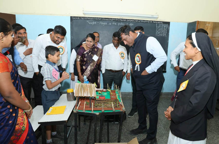 यावेळी शहर मुख्याध्यापक संघाचे ज्ञानदेव बेरड, गणित अध्यापक संघाचे नवनिर्वाचित अध्यक्ष संजय कुमार निक्रड, ॲड. शिजी जार्ज यांनी विद्यार्थ्यांना शुभेच्छा दिल्या. कार्मेल स्कूलच्या वतीने सर्व मान्यवरांचा सत्कार करण्यात आला. आकाश दरेकर यांनी आपण प्रत्येक कृती वैज्ञानिक दृष्टिकोनातून केल्यास निश्चितपणे नवनिर्मिती होऊ शकणार असल्याचे सांगितले.