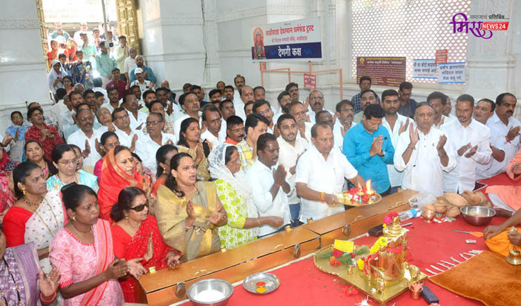 नगर (प्रतिनिधी)- ज्येष्ठ नेते तथा माजी आमदार अरुणकाका जगताप यांच्या प्रकृतीत सुधारणा होण्यासाठी शहराचे ग्रामदैवत श्री विशाल गणपती मंदिरात मंगळवारी (दि.8 एप्रिल) सकाळी महाआरती करण्यात आली. अरुणकाका बरे होवून सुखरुप शहरात परतावे यासाठी श्री विशाल गणेशाला साकडे घालण्यात आले.