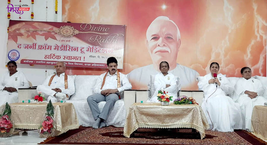 नगर (प्रतिनिधी)- प्रजापिता ब्रह्माकुमारी ईश्वरीय विश्वविद्यालय व मेडिकल विंग यांच्या संयुक्त विद्यमाने शहरात प्रथमच द जर्नी फ्रॉम मेडिसिन टू मेडिटेशन या विशेष कार्यक्रमाचे आयोजन करण्यात आले होते. या कार्यक्रमात माउंट आबू (राजस्थान) येथील मंजू दीदी यांनी प्रमुख प्रवक्ते म्हणून उपस्थित होत्या.